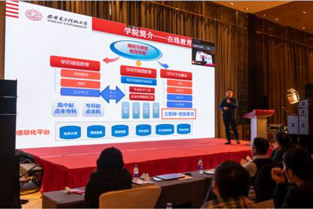 网教院经理苗启广以《以评促建 提质增效 创新发展》为主题做工作会议报告。他向各位参会代表简要介绍学校与学院的最新发展概况;分析新时代背景对继续教育的要求与改革发展面临的新形势;汇报本年度继续教育各项重点工作完成情况,并总结亮点成绩与不足改进之处;最后从学历教育评估、拓展非学历教育业务、国际化、人工智能+教育在继续教育领域的落地、管理信息化等方面思考未来发展,对学校下一阶段继续教育工作进行安排部署。